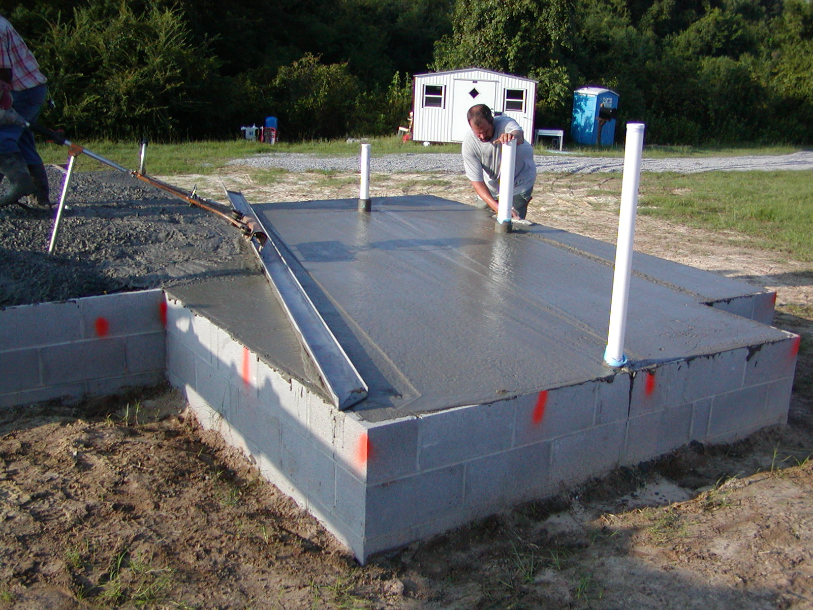 August 28, 2008 -- A power screed is being used to make sure the surface is flat. The white pipes are for plumbing. | ![]() |