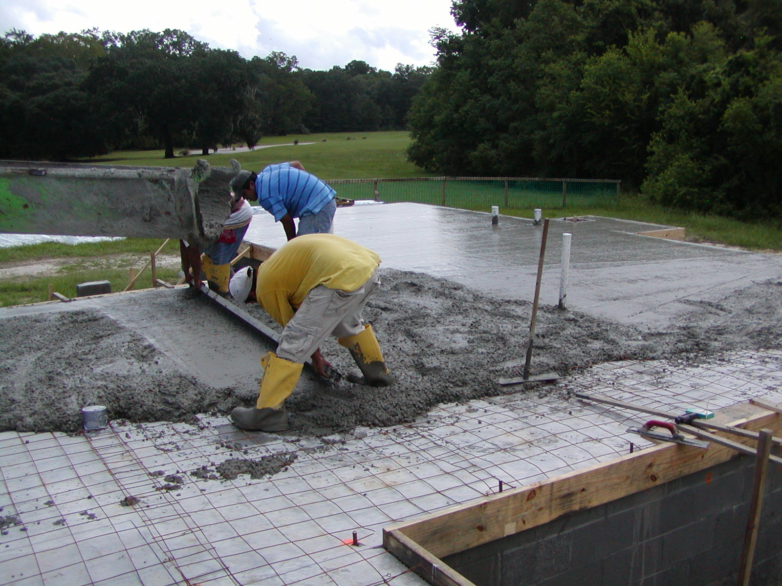 September 12, 2008 -- As they screed the concrete, the laser target is close. It is in the lower right corner of the photo. The sub shot the grade about 40 times across the slab. | ![]() |