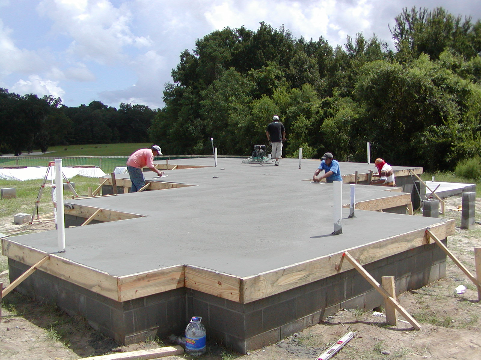 September 12, 2008 -- The concrete is down and being troweled. Before the day is out, the troweling will be complete, the slab will be scored and the forms removed. | ![]() |