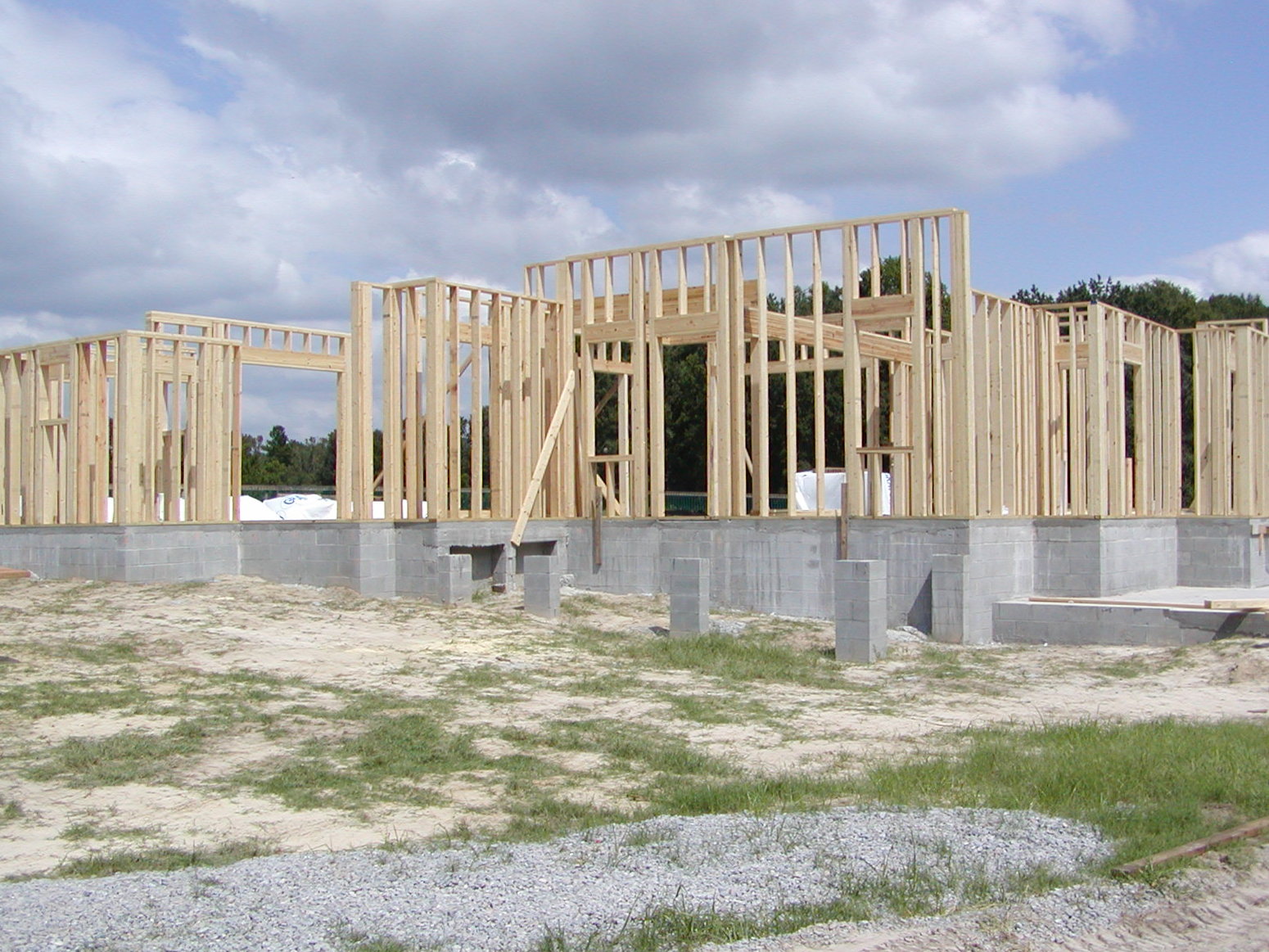 September 19, 2008 -- The framing continues. With the exception of the four gable walls, the first floor walls are completed. Walls still have temporary bracing. | ![]() |