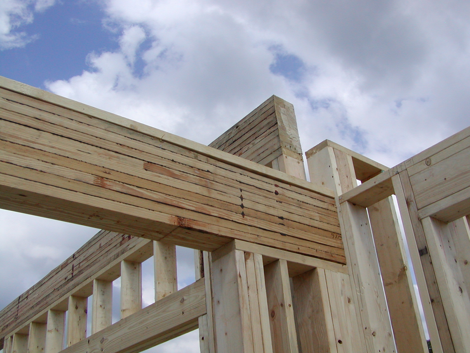 September 19, 2008 -- Note the massive beams that will support the center gables of the Groman Cottage. They are 5 1/2 inches wide, about 16 inches high and 16 feet long. | ![]() |