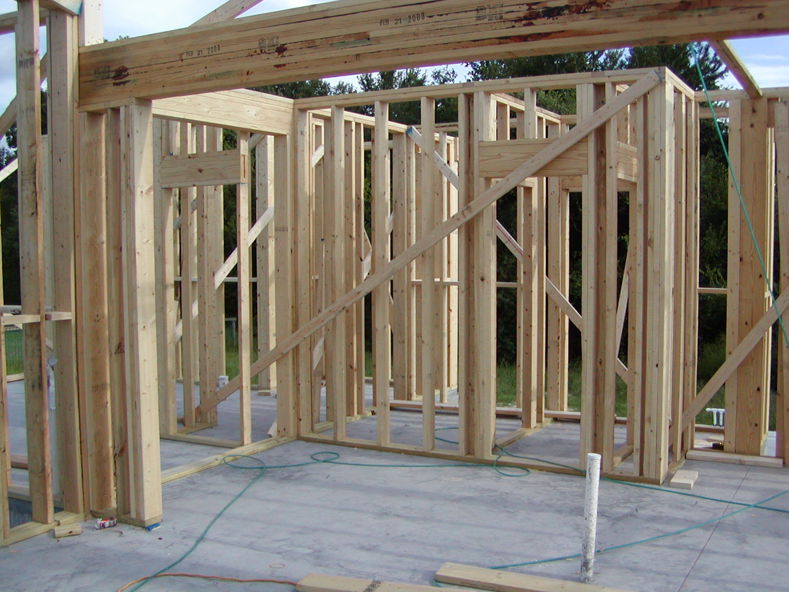 September 22, 2008 -- The interior walls also are carefully braced to make sure they stay square and straight up and down as the framing continues. | ![]() |