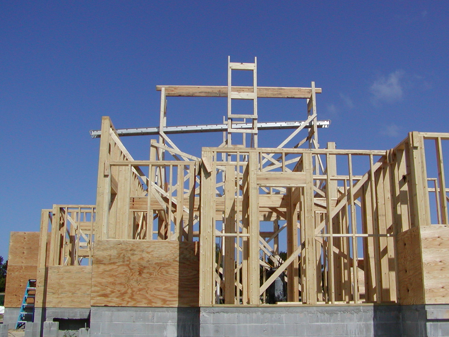 September 24, 2008 -- The main ridge beam is in place. It is over 21 feet above the floor. Cross ridge beams will be installed, probably this afternoon. | ![]() |