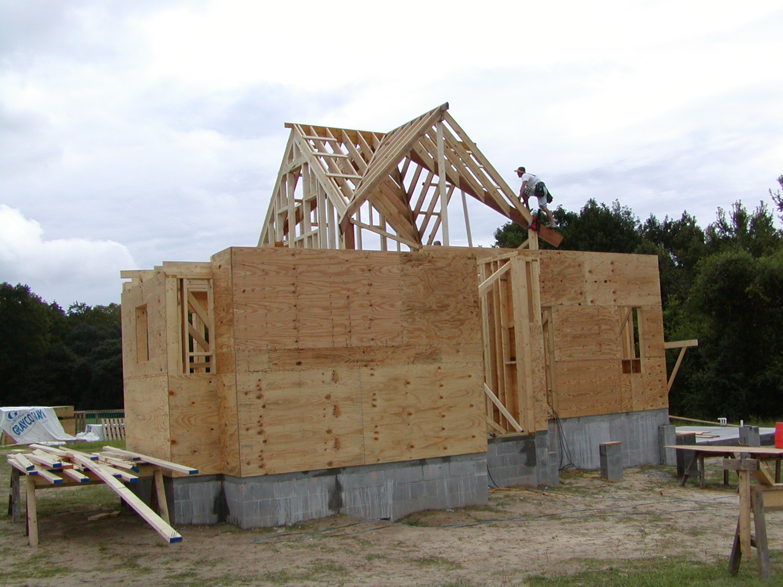 September 26, 2008 -- This is looking south east. The room closest to the camera is the master bath. Not all of the windows have been cut in the plywood yet. | ![]() |