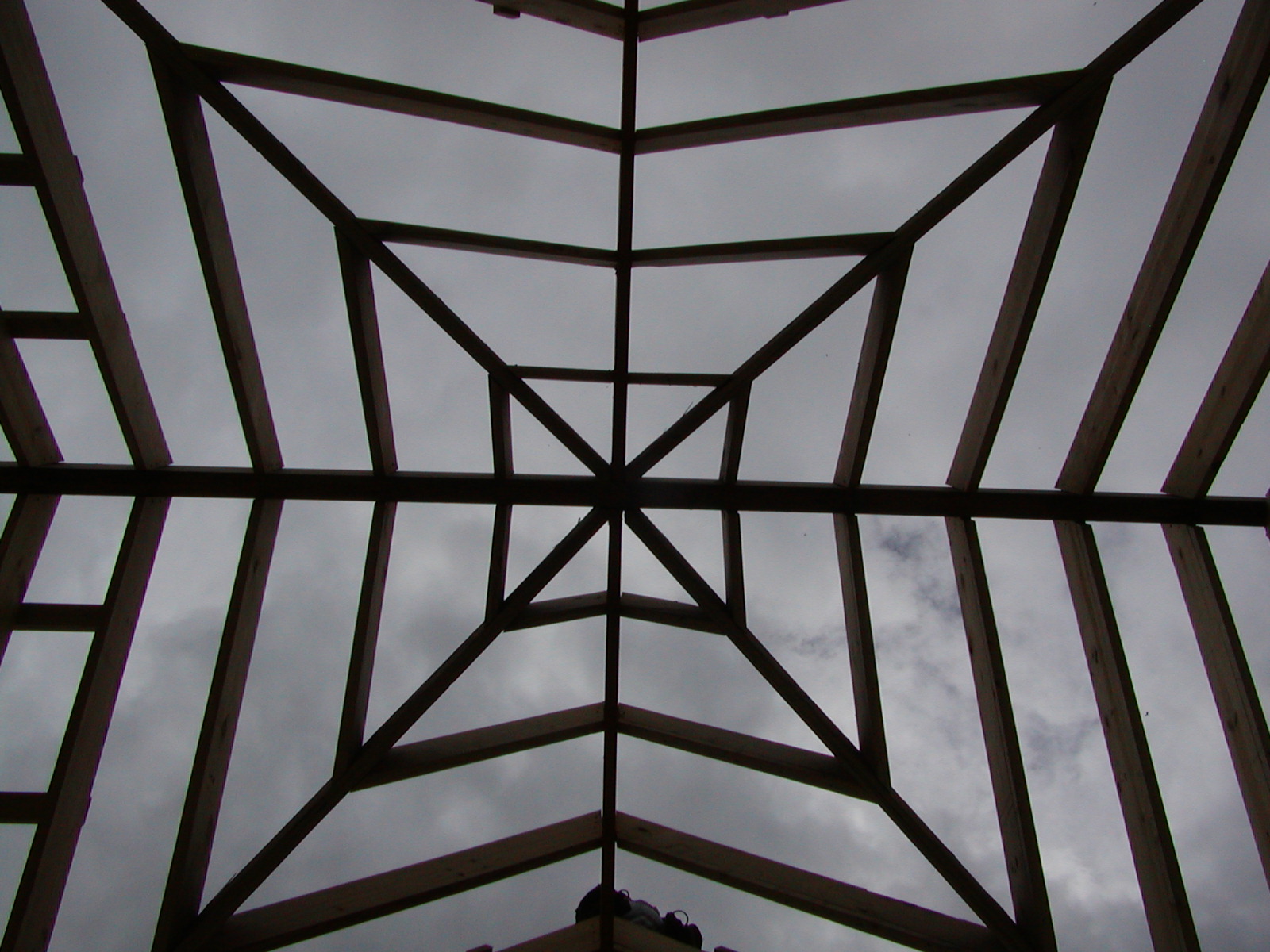 September 26, 2008 -- This is looking straight up in the great room. The rafters are really straight even though they don't look it. | ![]() |