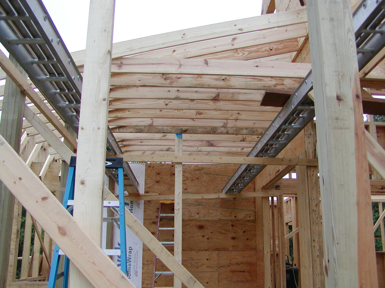 October 10, 2008 -- The porch ceiling joists are also being installed. The porch will have a cement board ceiling. | ![]() |