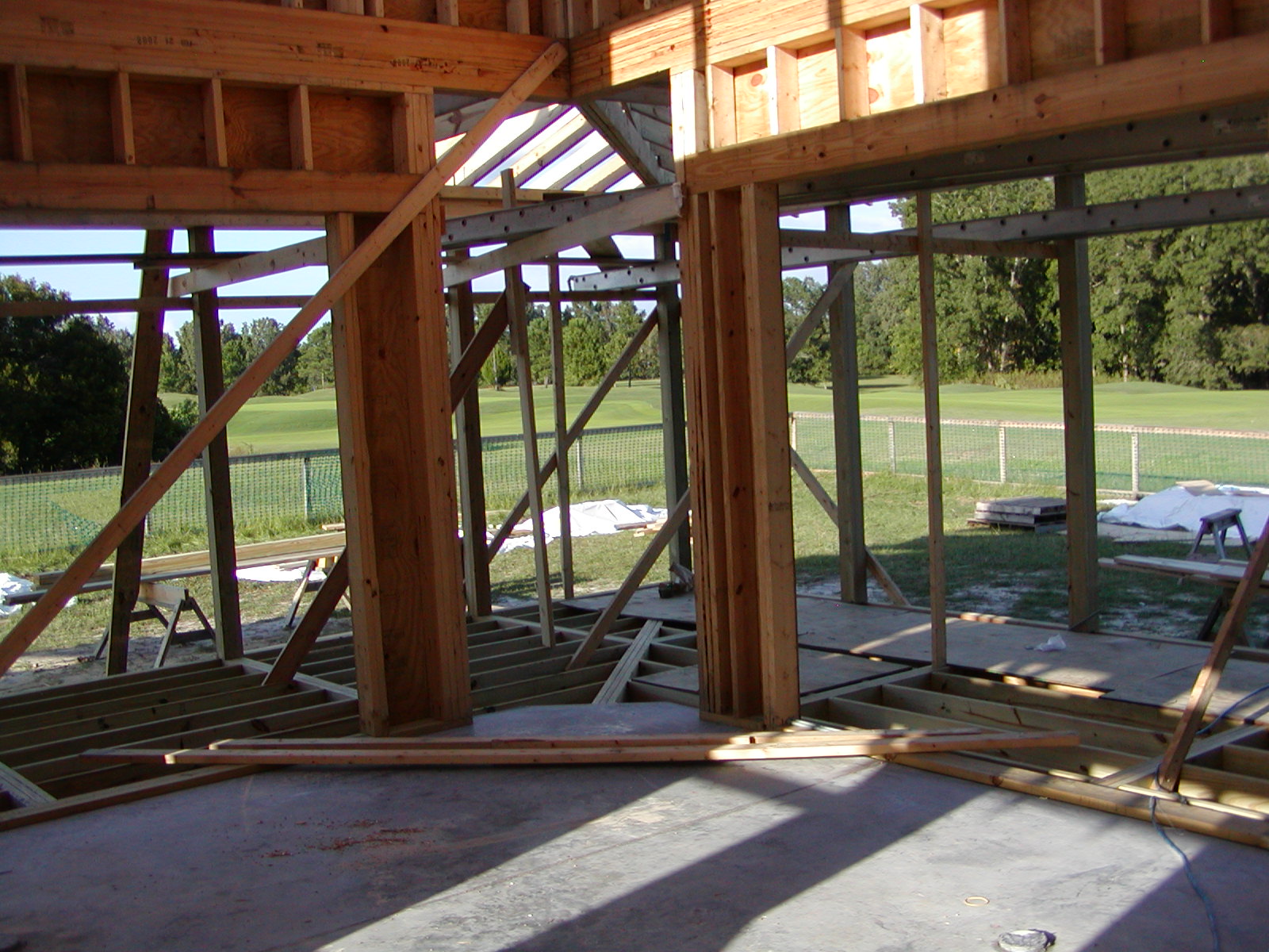 October 13, 2008 -- The view from the kitchen will be very nice. A fireplace and television will be in the center opening. Doors with a lot of glass will go in the large openings. | ![]() |