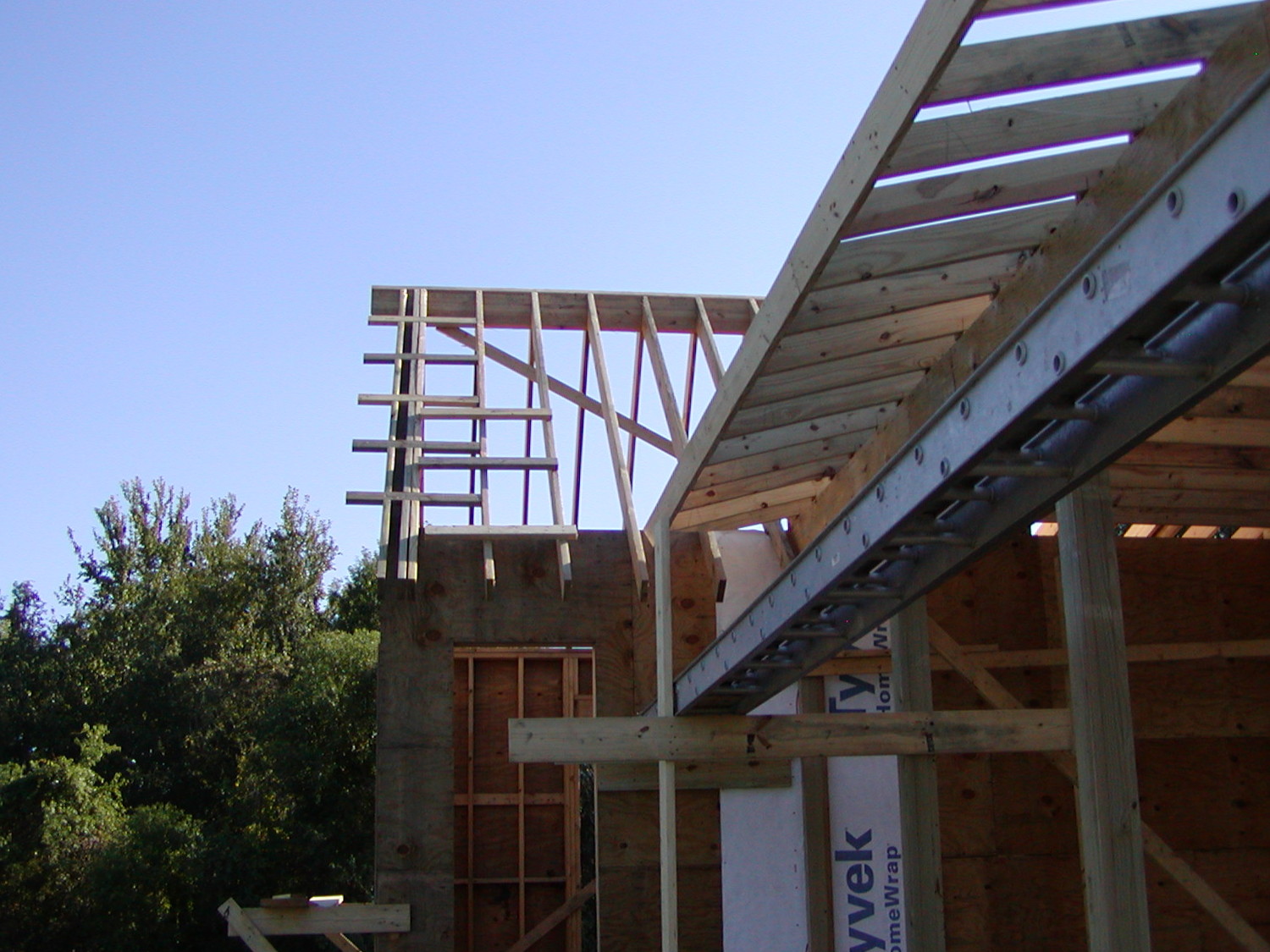 October 16, 2008 -- The lookouts are being installed on the east end of the guest bedroom. Barge rafters (one on each side) will be installed in a very short time. | ![]() |