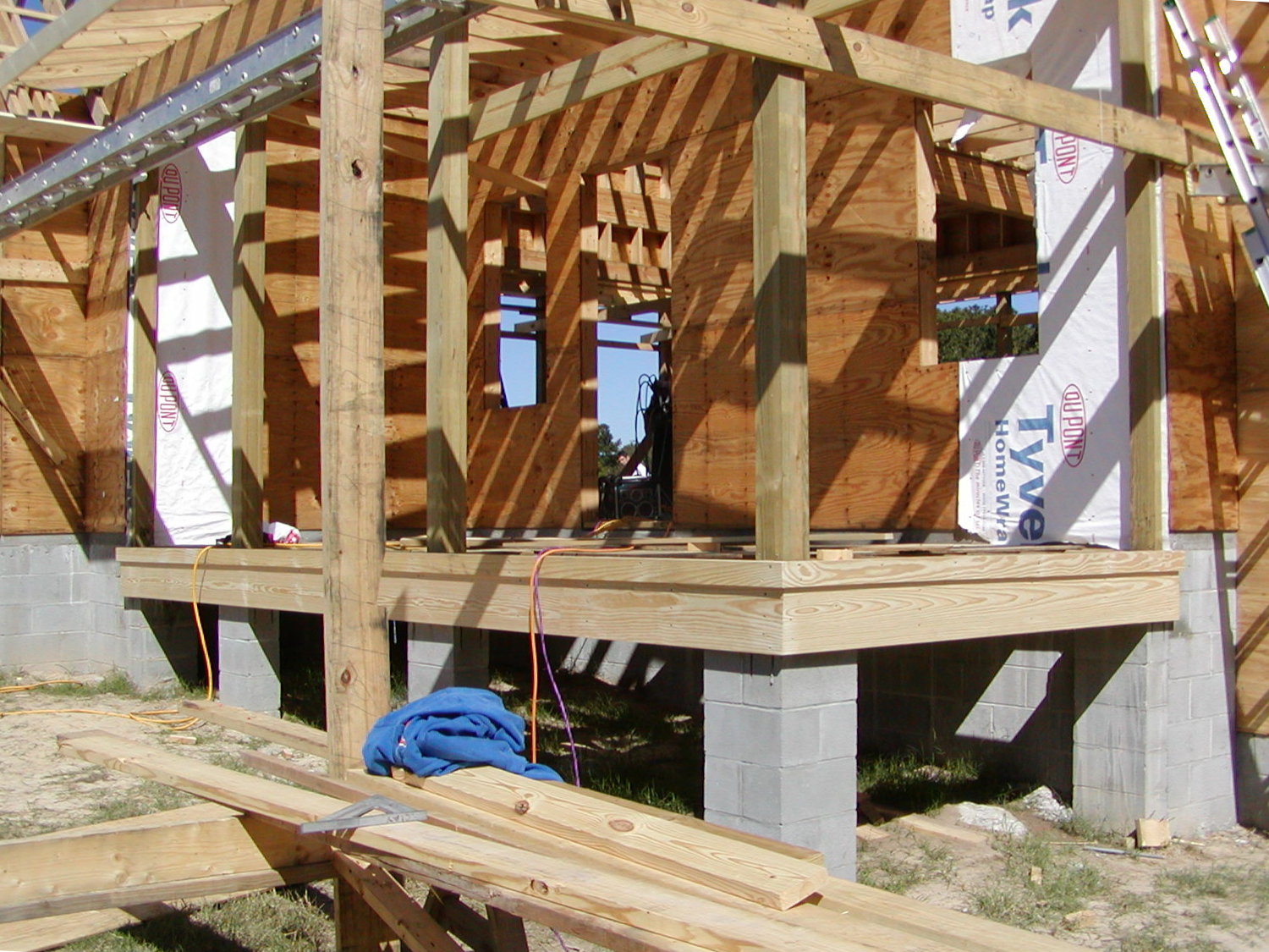 October 20, 2008 -- The trim skirt boards are being put on the porches. The piers and block walls will be covered with stucco. | ![]() |