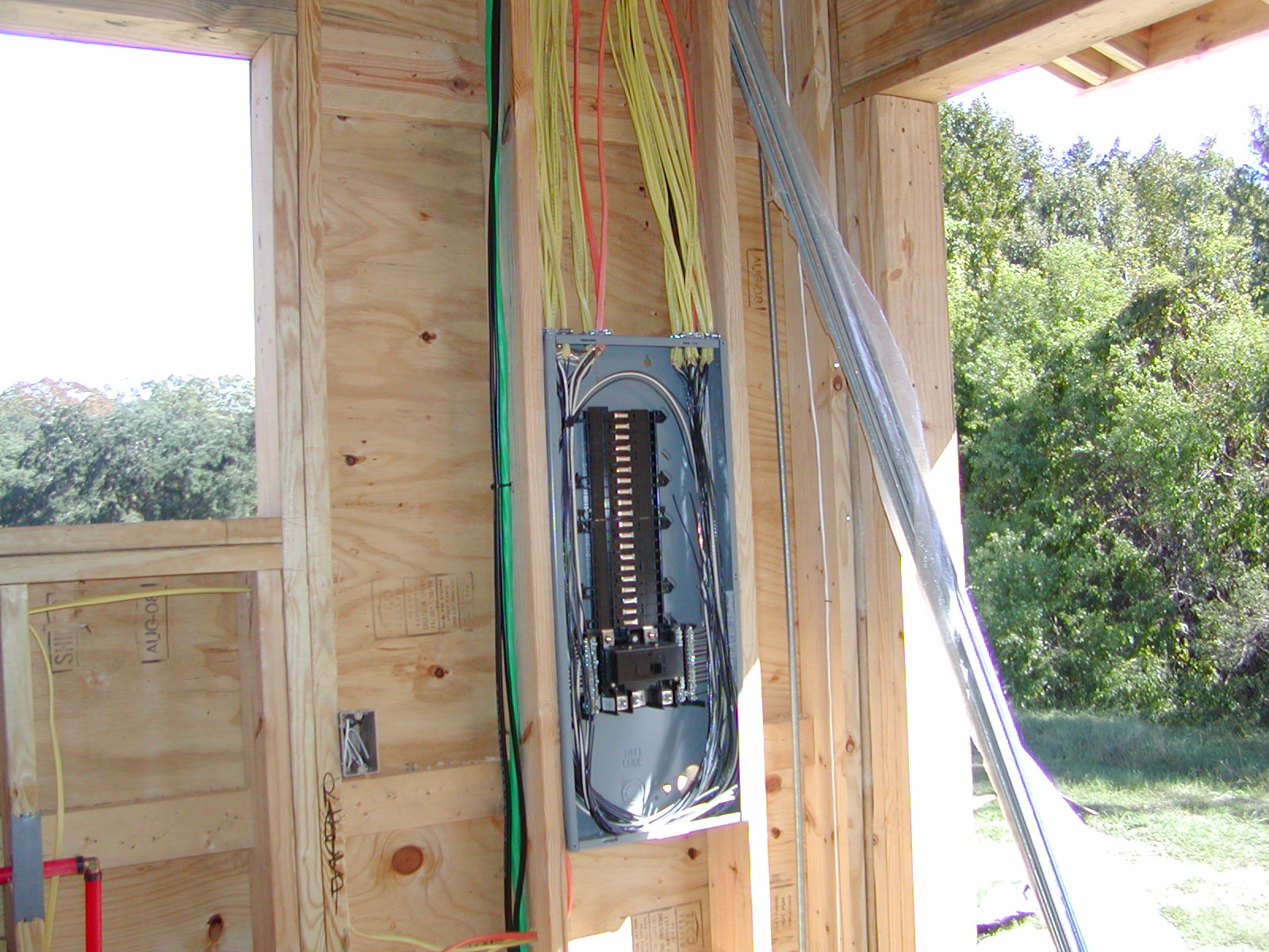 October 29, 2008 -- The electrical rough in is essentially completed. The panel box is near the golf cart garage door. The meter will be on the wall directly behind the electrical panel. | ![]() |