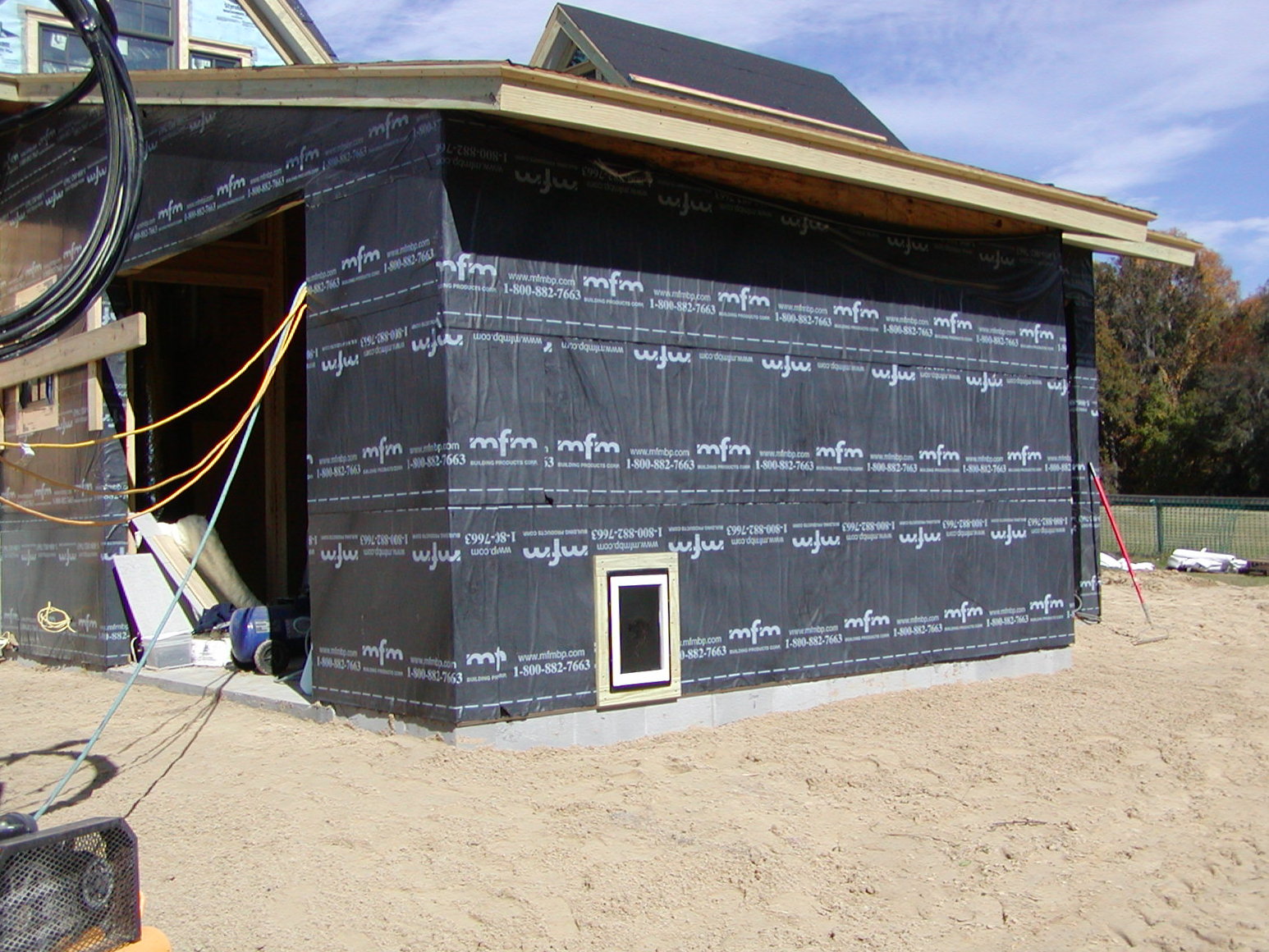 November 11, 2008 -- The dog door is installed. There will be a dog run outside. It will be about 6 feet by 14 feet. The fence will be board on the entrance side and black chain link on the other two sides. The garage will form the fourth side. |