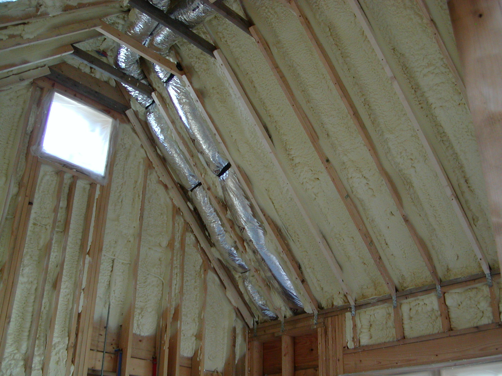 November 11, 2008 -- The master bedroom has insulation in the roof. The HVAC ducts were dropped so insulation could go behind them. | ![]() |