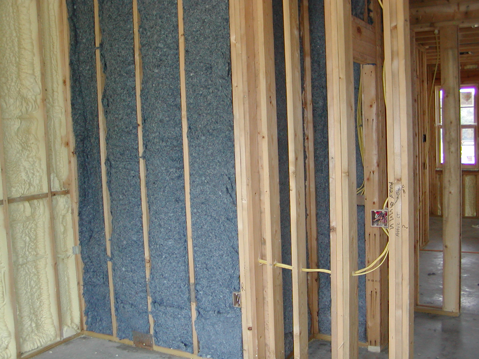 November 13, 2008 -- The blue insulation is for sound isolation. We install it around bathrooms and showers, typically. | ![]() |