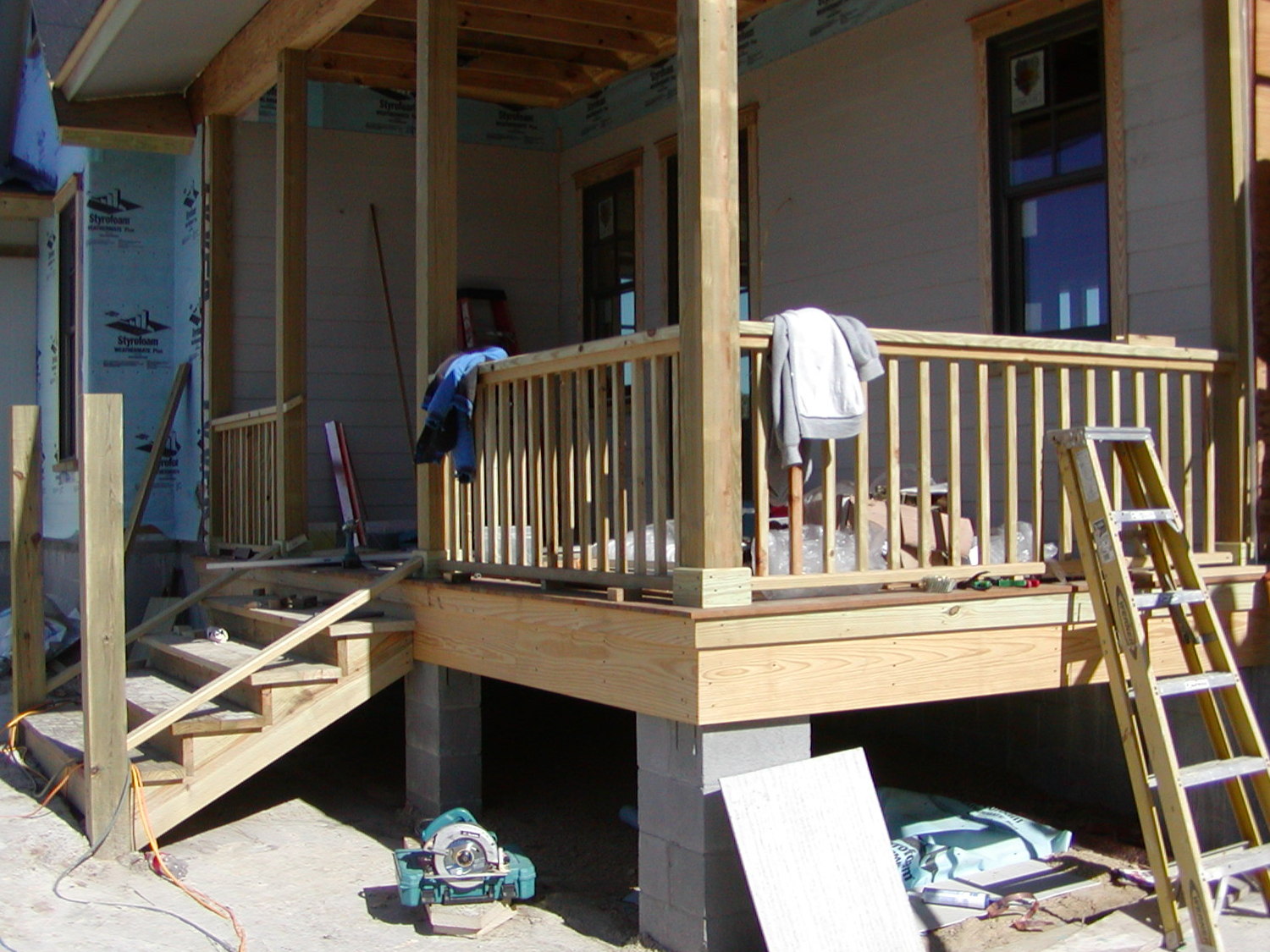 November 17, 2008 -- The entry porch rails are completed. The steps are also finished except for the railings. They are being built today. | ![]() |