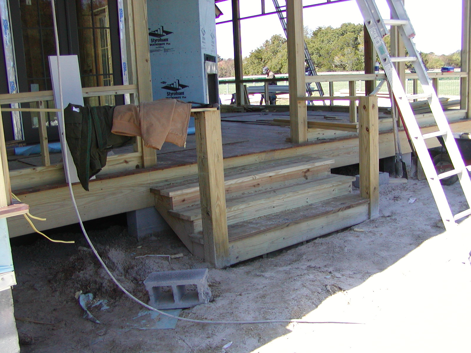 November 17, 2008 -- The screened porch steps were built on Friday. There will be a 7 1/2 by 13 foot tabby concrete terrace at the foot of these steps. | ![]() |