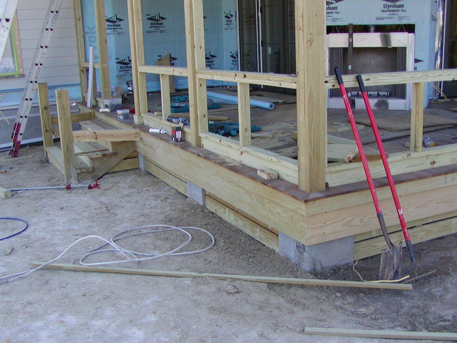 November 18, 2008 -- The hog fence is being installed between piers. It is also under the steps. In the next day or so, the stairs will have railings installed on them. | ![]() |