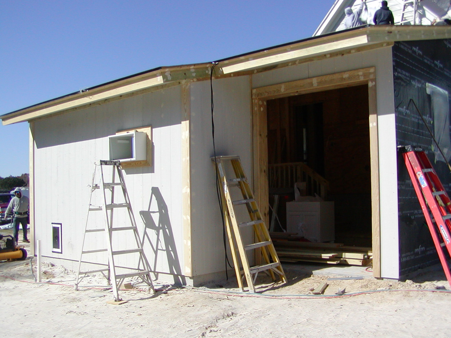 November 18, 2008 -- The south side of the garage is sided and trimmed. The east side of the garage remains to be trimmed. | ![]() |