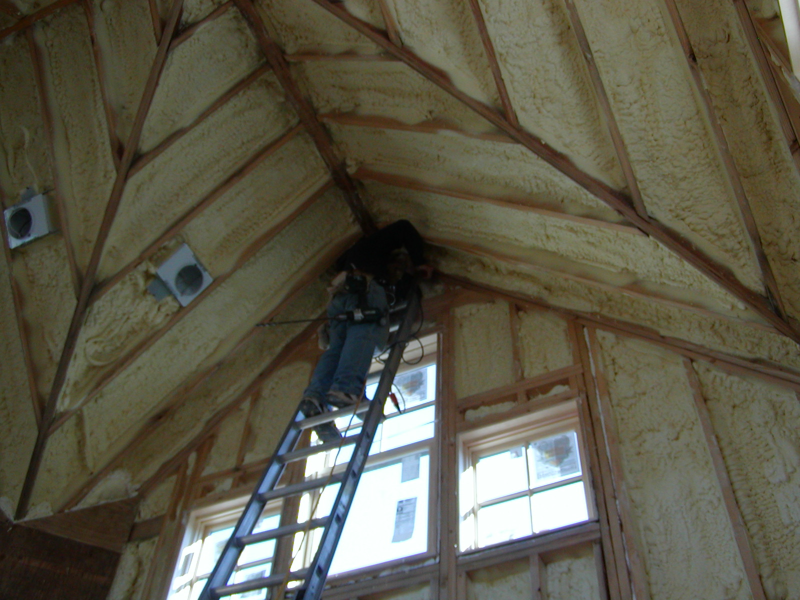 November 20, 2008 -- Lightning rods are being installed in the tall gables. They will be connected to ground rods with a large copper wire. | ![]() |