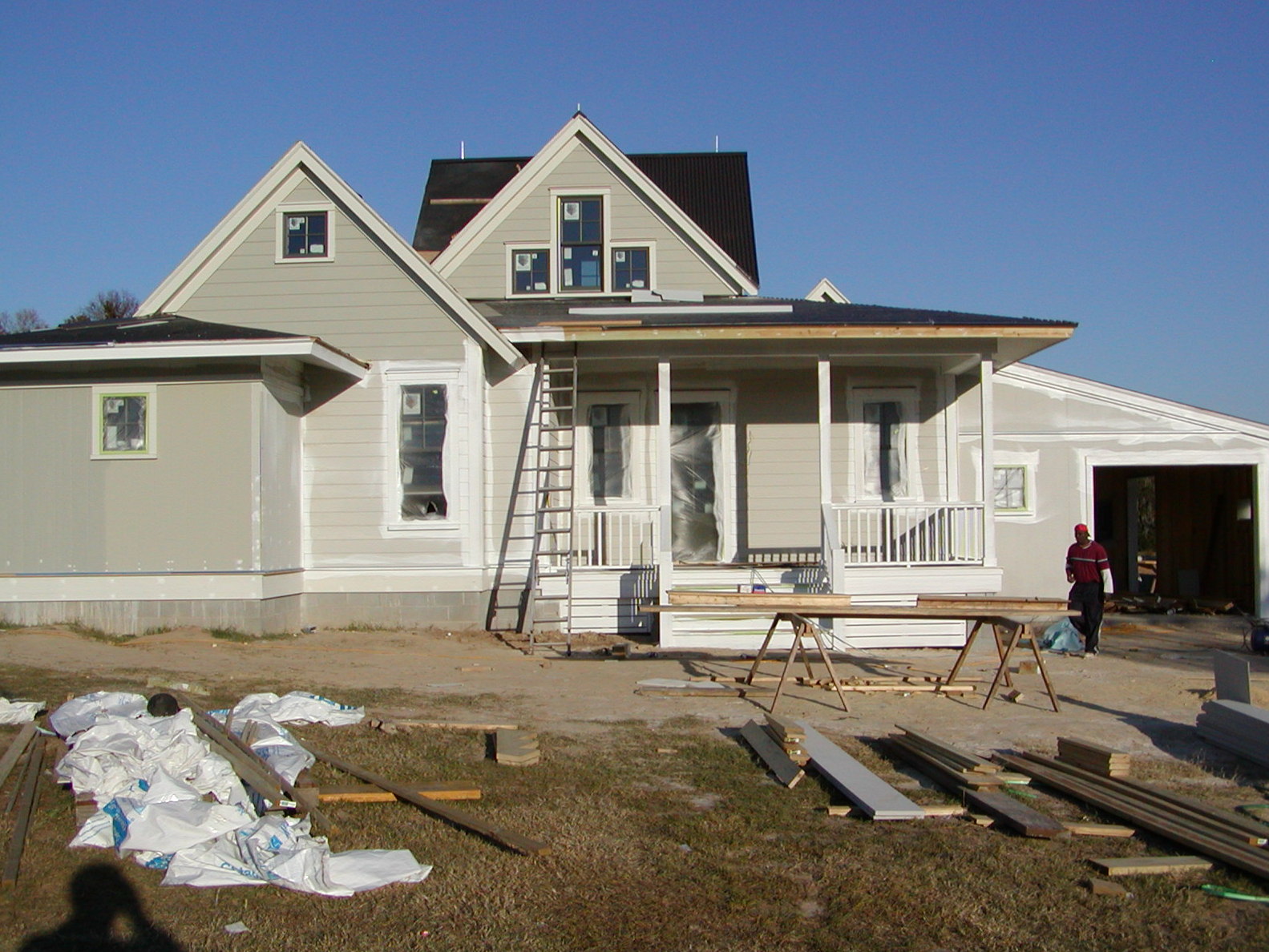 November 20, 2008 -- Much of the front exterior trim is painted. The upper gables are painted the final colors. | ![]() |