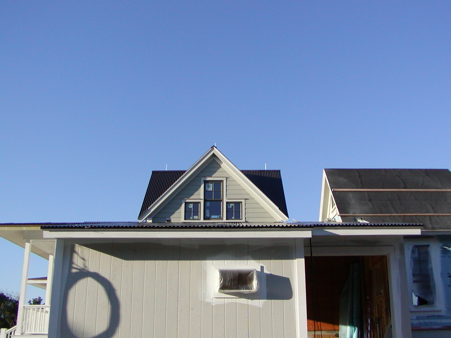 November 20, 2008 -- The tall gables shown have roofing on them. The garage (in the foreground does also. The box on the garage wall is for the air conditioner / heater unit for the garage. | ![]() |