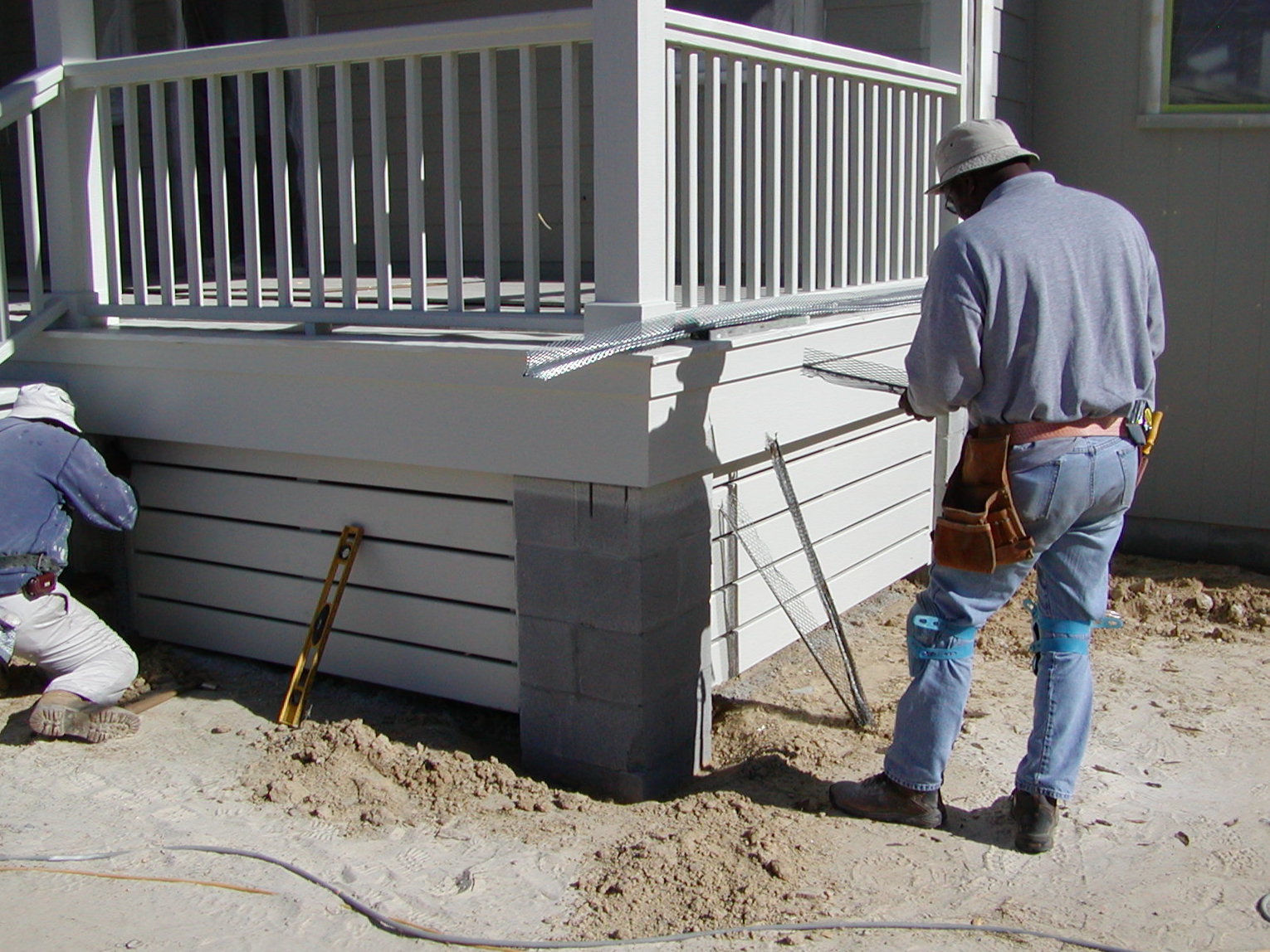 November 25, 2008 -- Stucco work has begun. It should be finished within a few days. The stucco will be a light gray color. | ![]() |
