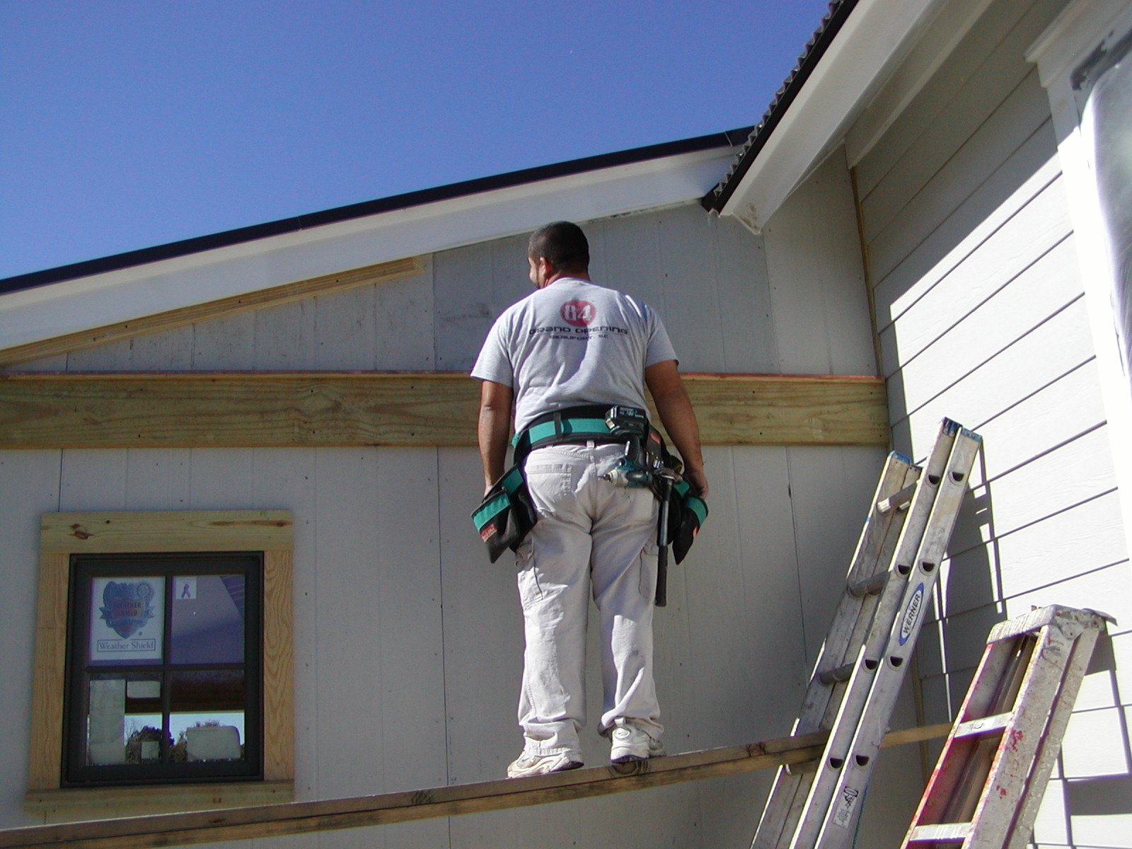 December 1, 2008 -- The exterior siding and trim is being finished. After this section, there is one more small section by the master bath. | ![]() |