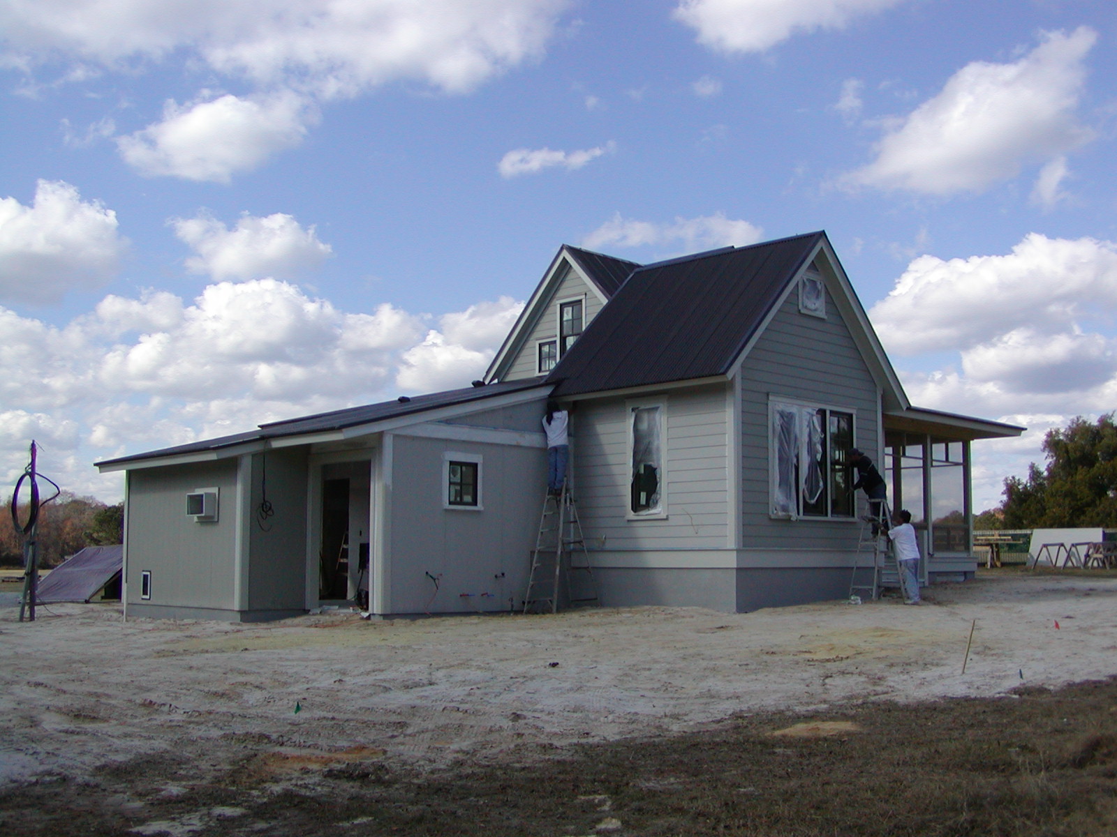 December 4, 2008 -- The opening between the living area and the kitchen/dining area has sheet rock on it. The doorway to the right of the scaffold will be cased only. | ![]() |