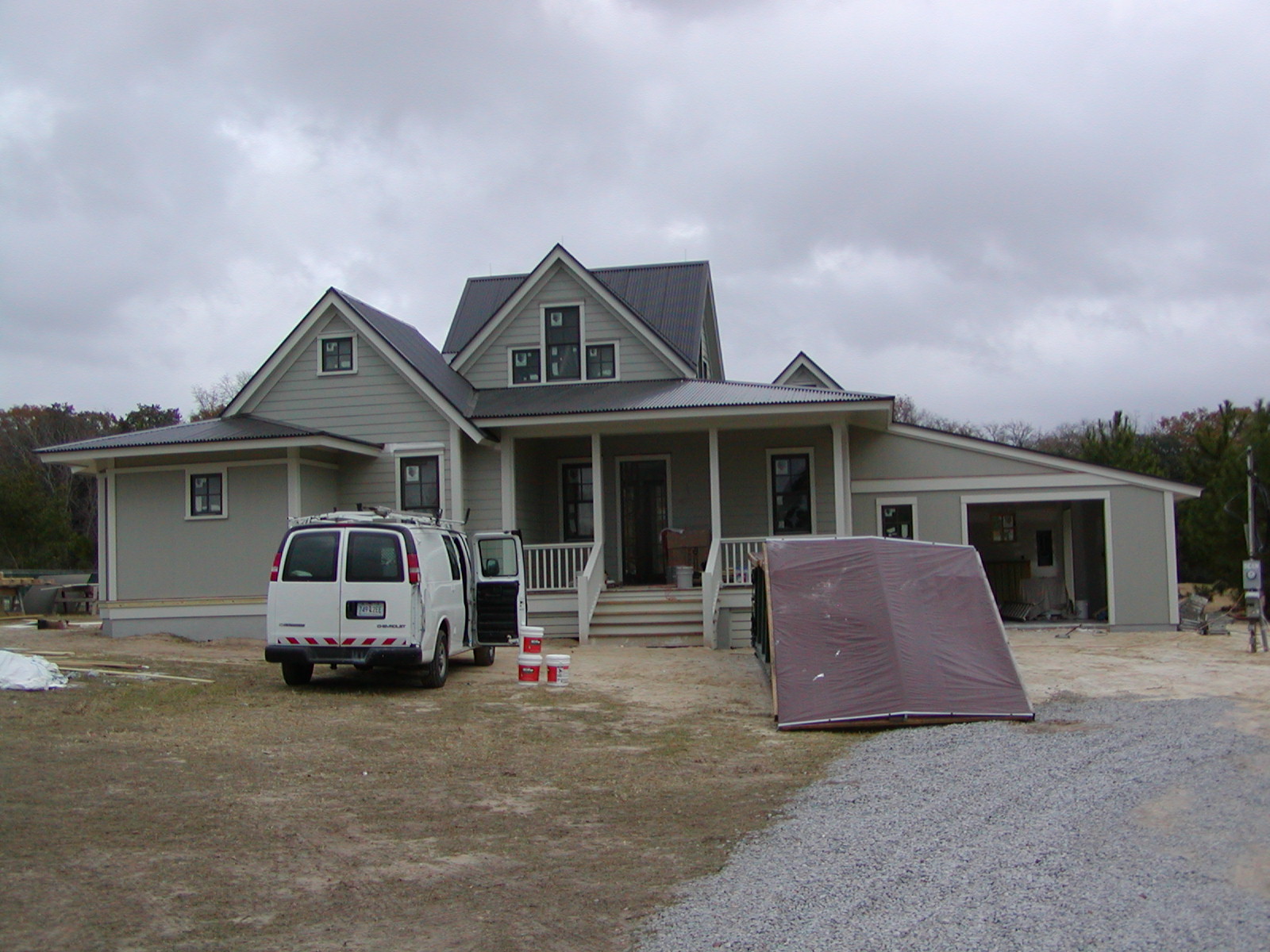 December 10, 2008 -- The forecast is for rain, but so far, we have been able to catch up some odds and ends outside. The priming should be done today and tomorrow interior work starts. | ![]() |