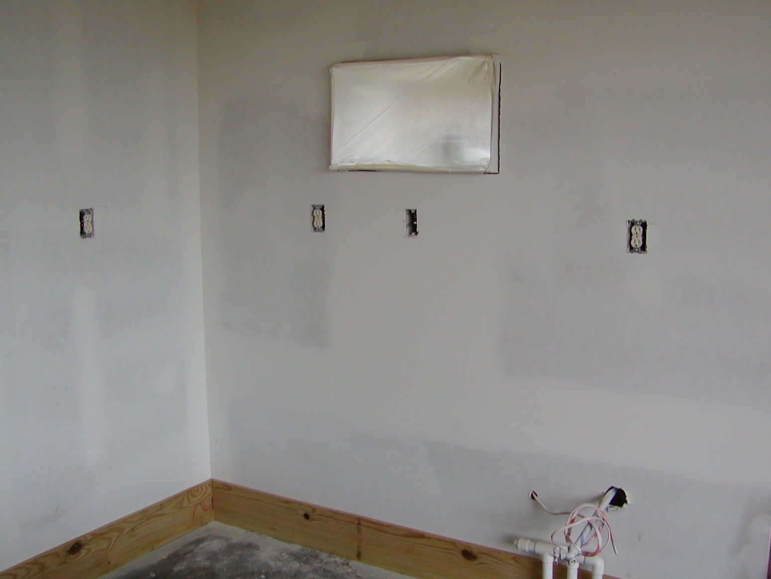 December 11, 2008 -- Electrical work has also begun preparing for permanent power. The large box on the wall is for a through the wall air conditioner and heater. Today, it is rainy. Yesterday, it was 76 degrees -- not bad for December 10. |