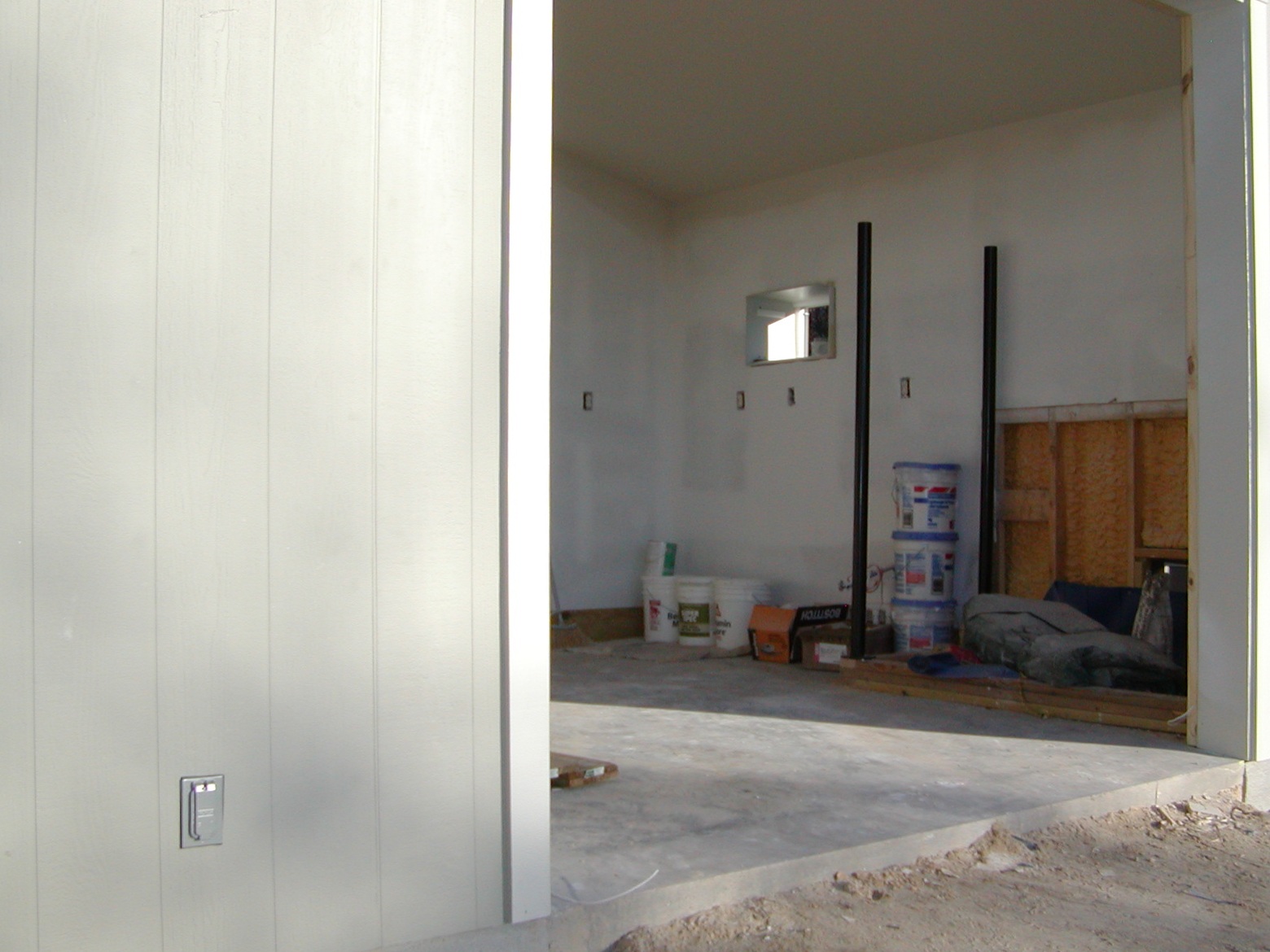 December 12, 2008 -- Some of the outdoor outlets are installed (lower left). The black poles are for a chainlink kennel. The wall in the kennel will be tiled this coming week. | ![]() |
