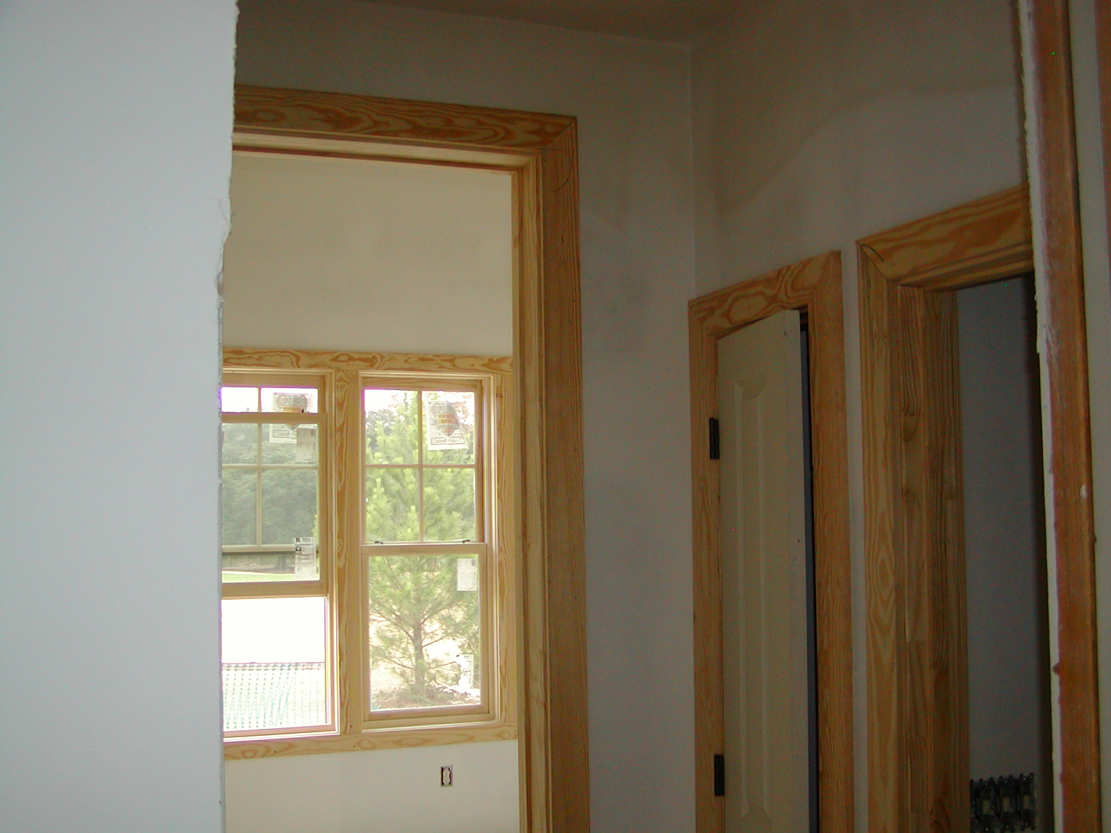 December 15, 2008 -- The doors as well as the windows are being trimmed out in the house. The pocket door (close to the camera) is being trimmed out now. | ![]() |