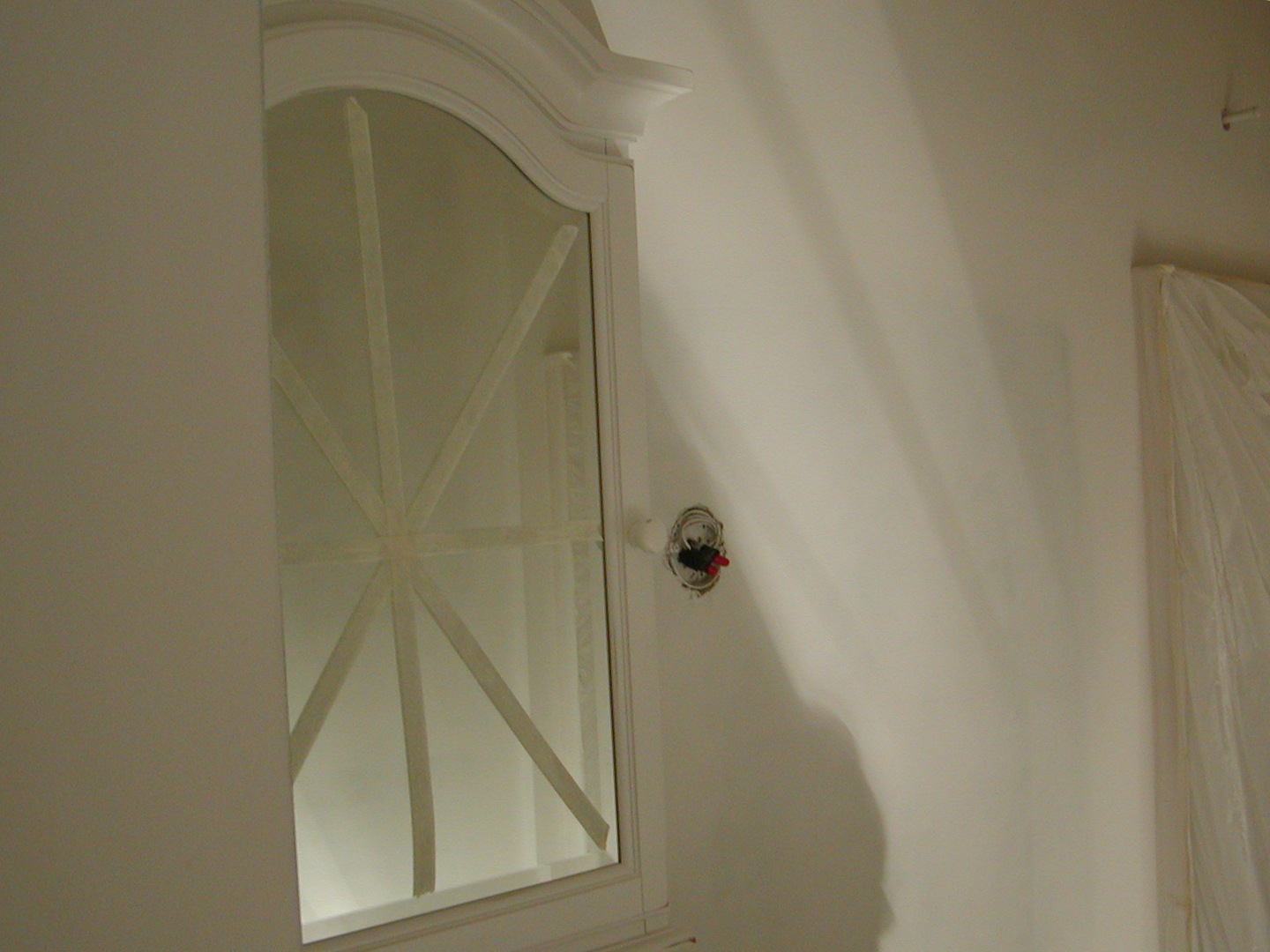 December 17, 2008 -- The medicine cabinet is mounted in the guest bathroom. The box to the right of the mirror is for a light. There is a light on each side of the cabinet. | ![]() |