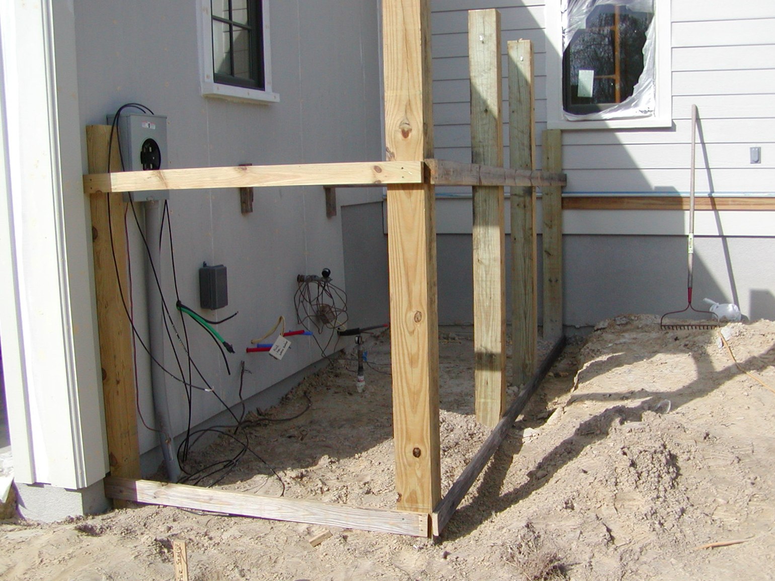 December 18, 2008 -- The service yard is formed and will soon be ready to pour. Notice the black permanent phone wires are in place. | ![]() |