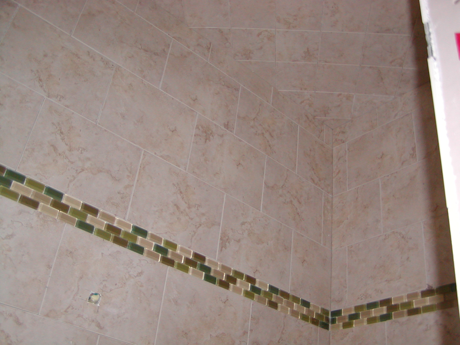 December 18, 2008 -- The shower tiling is proceeding. This is a view of the ceiling and two walls. The ceiling and the floor will have the 6 x 6 tiles laid diagonally. | ![]() |