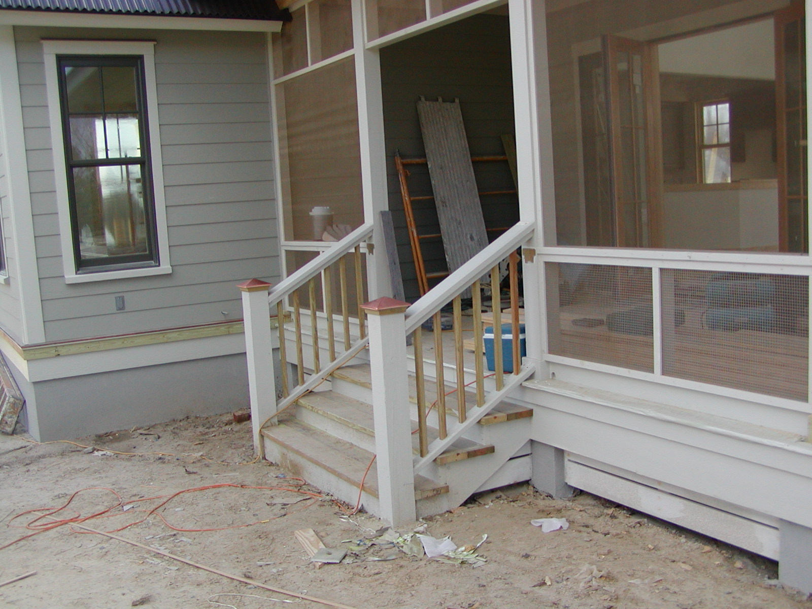 December 18, 2008 -- Notice anything new? The railings had to be raised to meet code. We had installed them at the same level of the porch railings. The posts now have copper caps. | ![]() |