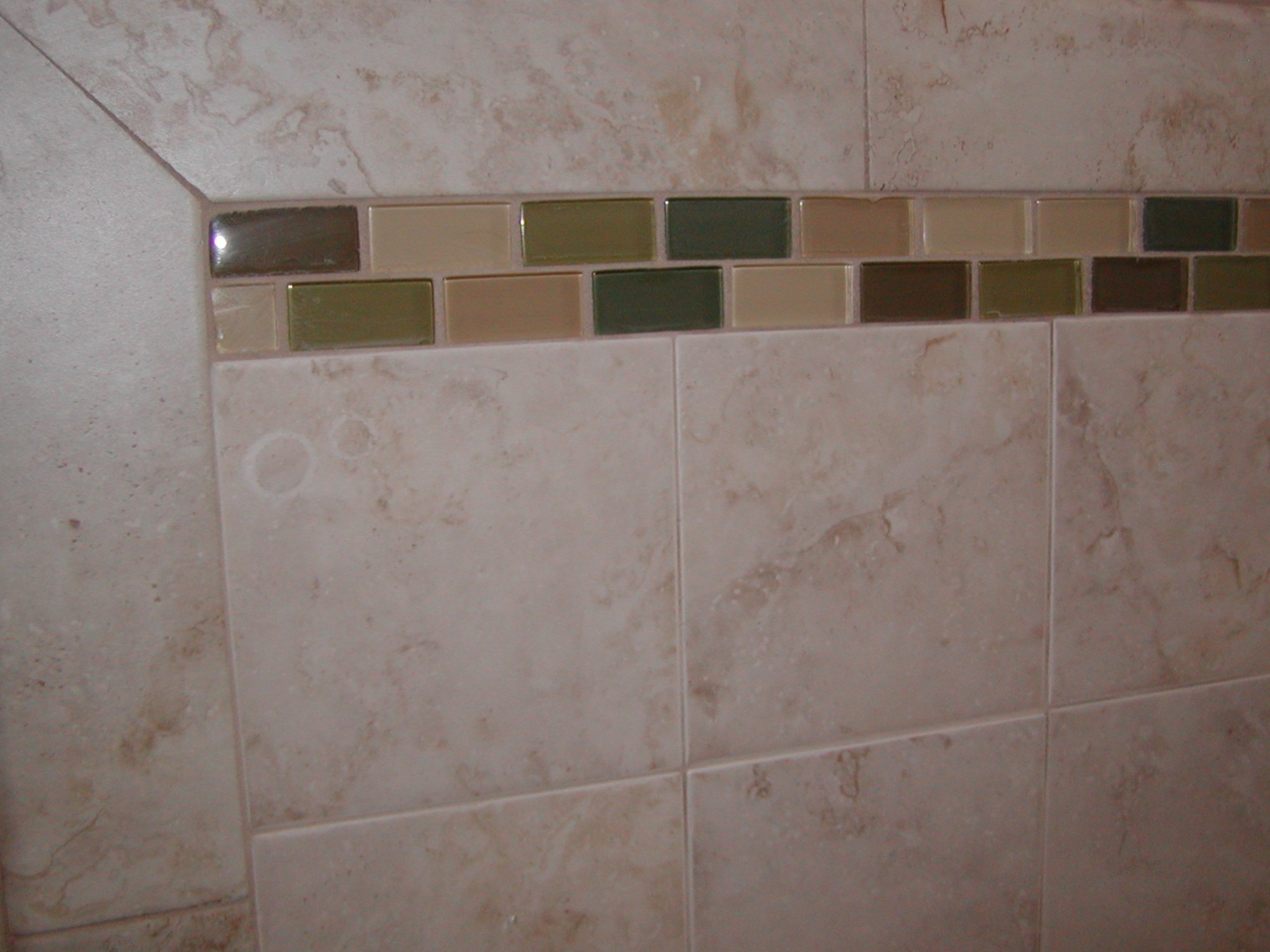 December 22, 2008 -- This is a close up of the tile in the master toilet area. It also has been grouted, but not cleaned well. The big tiles are about six inches square. | ![]() |