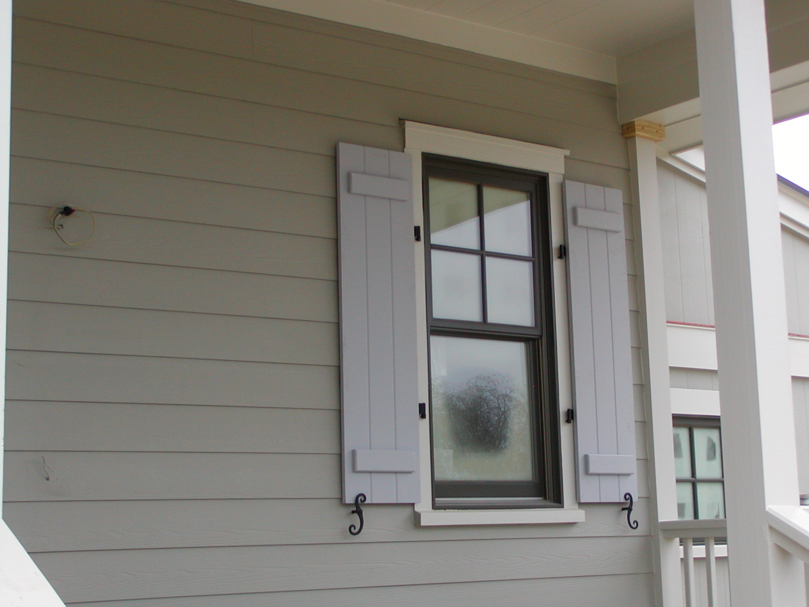 December 23, 2008 -- The shutters are being installed. They will be painted a dark bronze color to match the hog fencing and step treads. These are functional hurricane resistant shutters. | ![]() |
