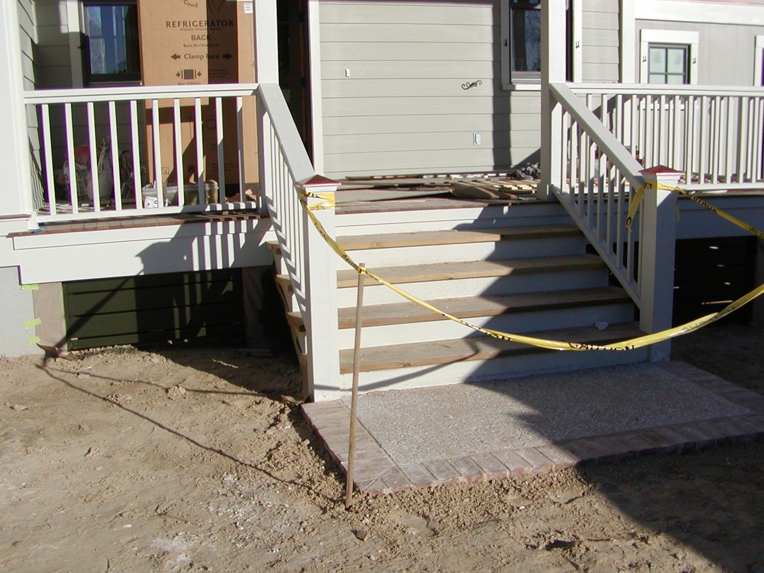 December 30, 2008 -- The hog fencing is painted the correct color. The brick border at the front steps is in place and setting. | ![]() |