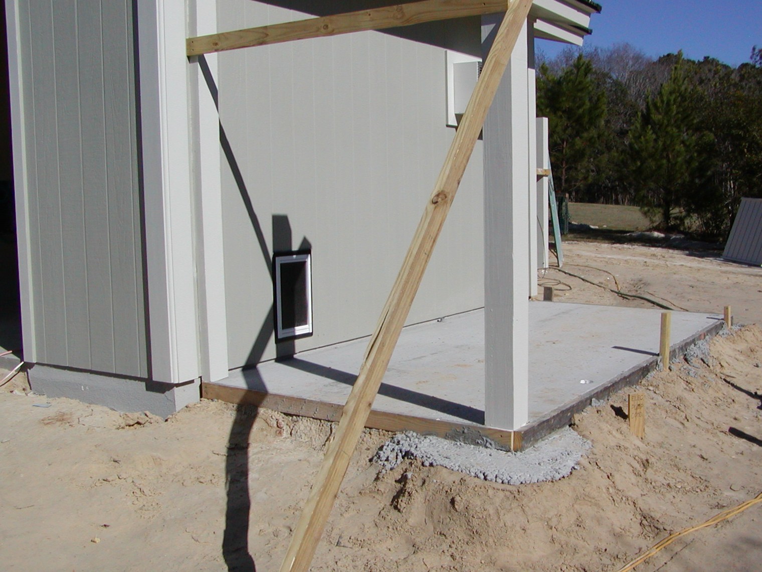 December 31, 2008 -- It is the last day of 2008. Work has stoped on the house until next year (Friday). Here are some photos to summarize the progress. The dog yard is poured and ready for fencing. This will be done the first week of 2009. |