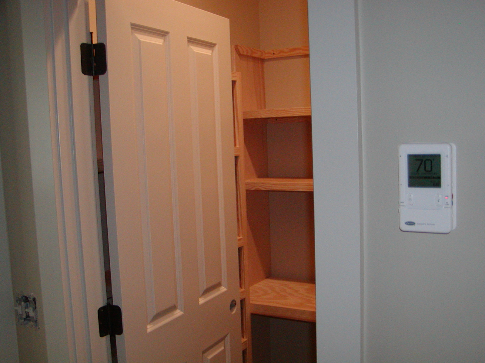 December 31, 2008 -- The inside lockable storage room is getting shelves. They are almost complete. The thermostat is installed and the HVAC is running. | ![]() |