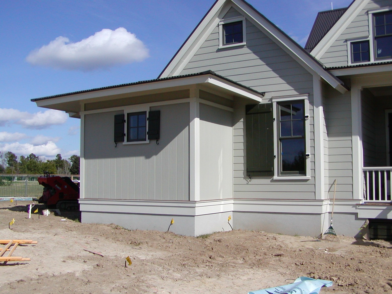January 5, 2009 -- Shutters are painted and installed. They are functional shutters with special hurricane panels on them for protection. | ![]() |