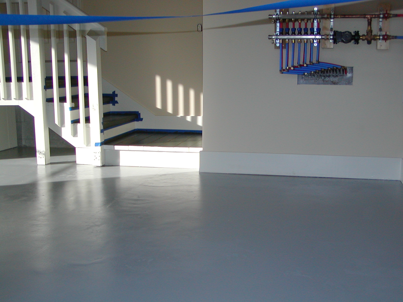 January 5, 2009 -- The garage floor has been painted with a special epoxy paint made for concrete. The stair treads are also painted. Masking tape has not been removed yet. | ![]() |