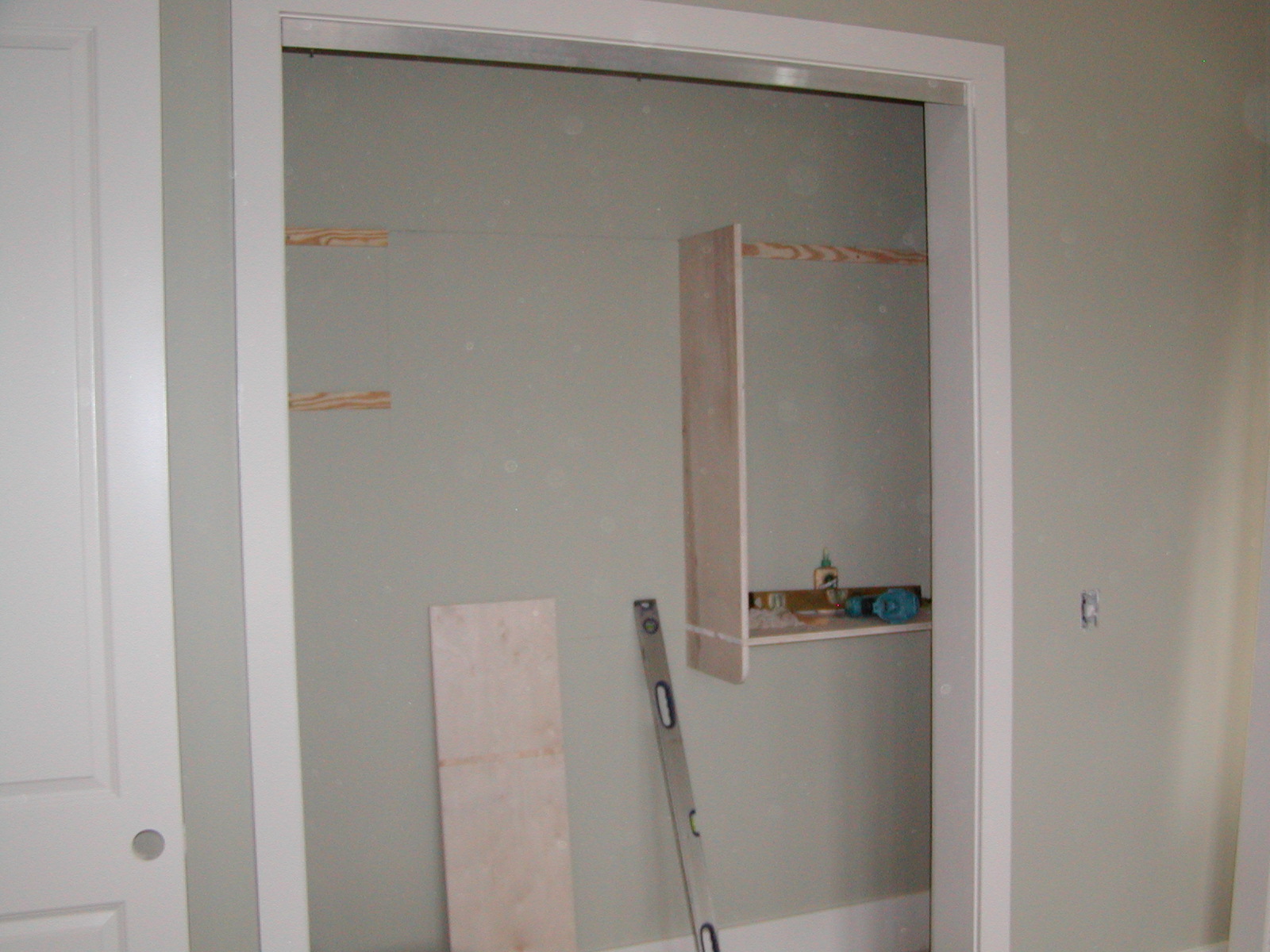January 6, 2009 -- Shelves are being installed in the master closet. There will be three sections. These should be finished very soon. | ![]() |