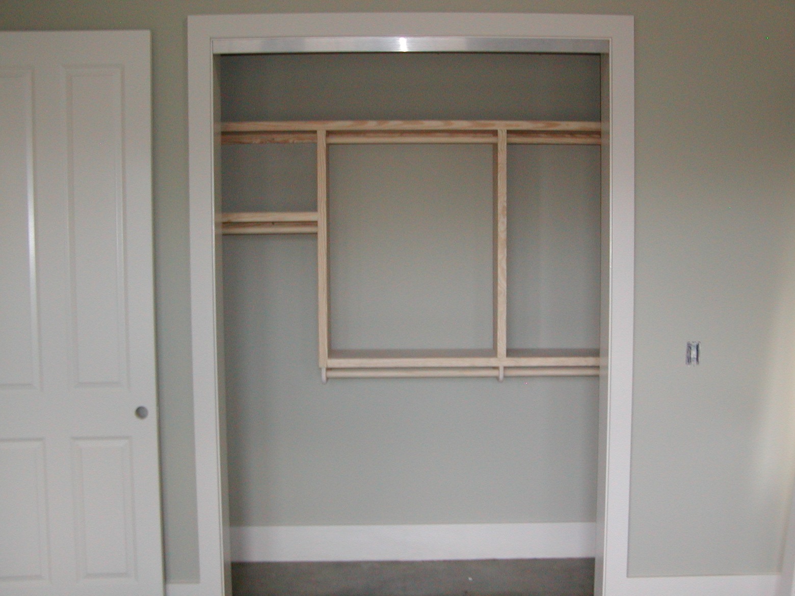 January 6, 2009 -- The master closet shelves and rods are now built and installed. They will be painted the trim color. | ![]() |