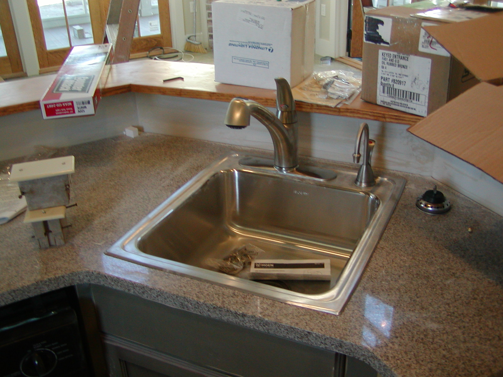 January 8, 2009 -- The kitchen sink is ready to install. Right now, we are waiting on the backsplash to be installed. The dispenser on the right of the sink is an instant hot water dispenser. | ![]() |