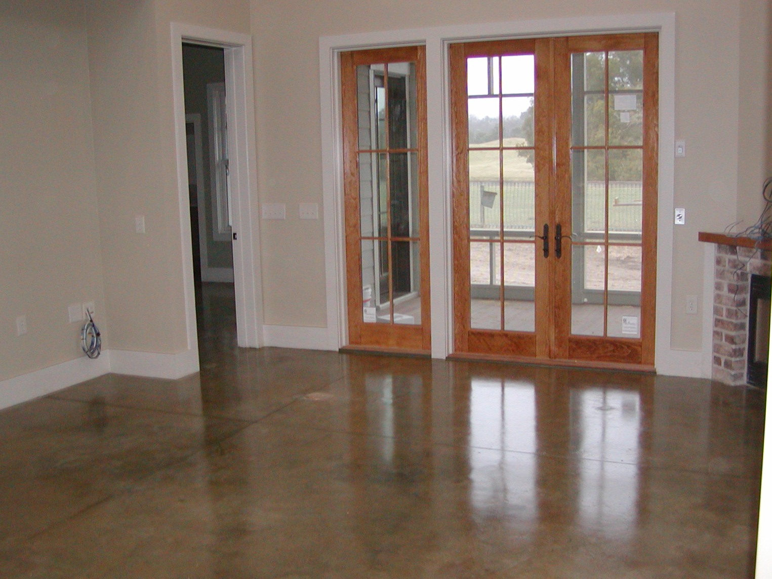 January 13, 2009 -- This is looking north from the dining area through the great room. A fairway is visible out the double doors. The master suite is to the left. A/V wires are over the mantle for a flat screen television. |