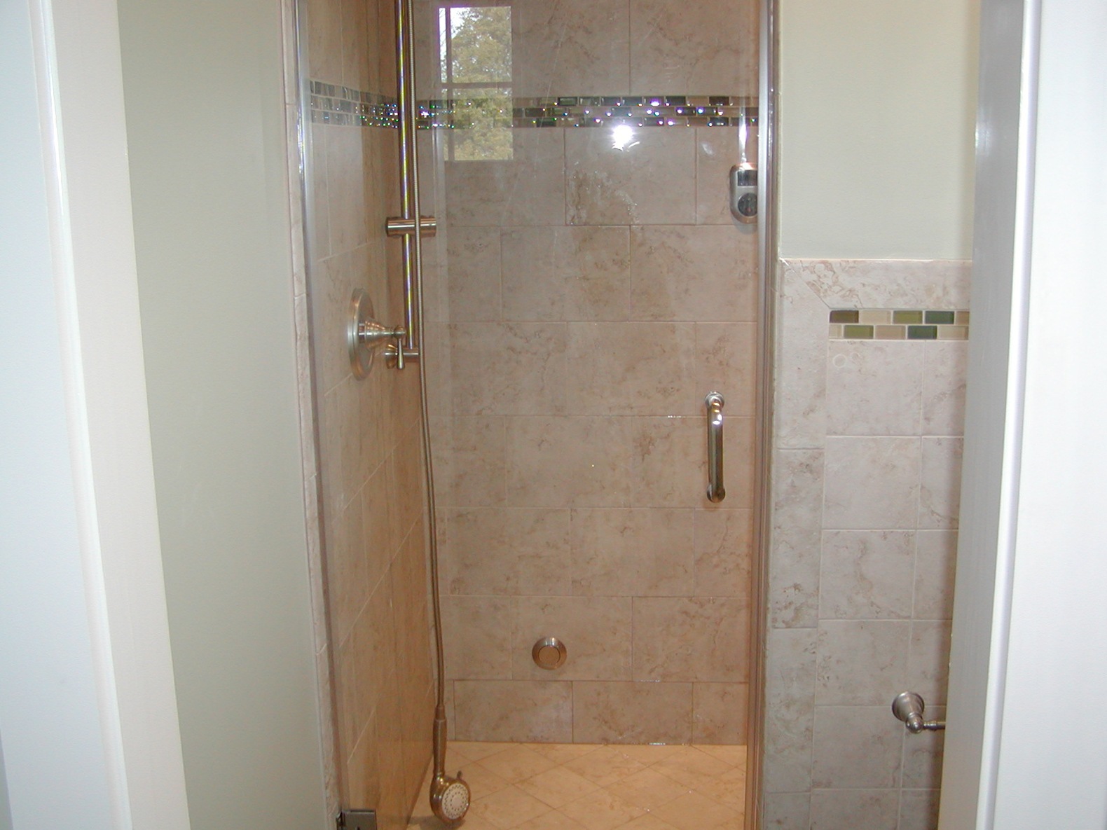 January 15, 2009 -- Look closely. There is now a shower door on the shower. It is a frameless door that is hinged on the left. | ![]() |