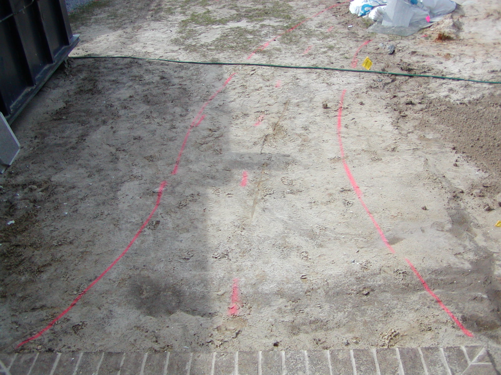 January 15, 2009 -- The sidewalk has been laid out. It will be crushed stone with steel borders. The small red-orange flag un the upper right corner will soon be a pathway light. | ![]() |