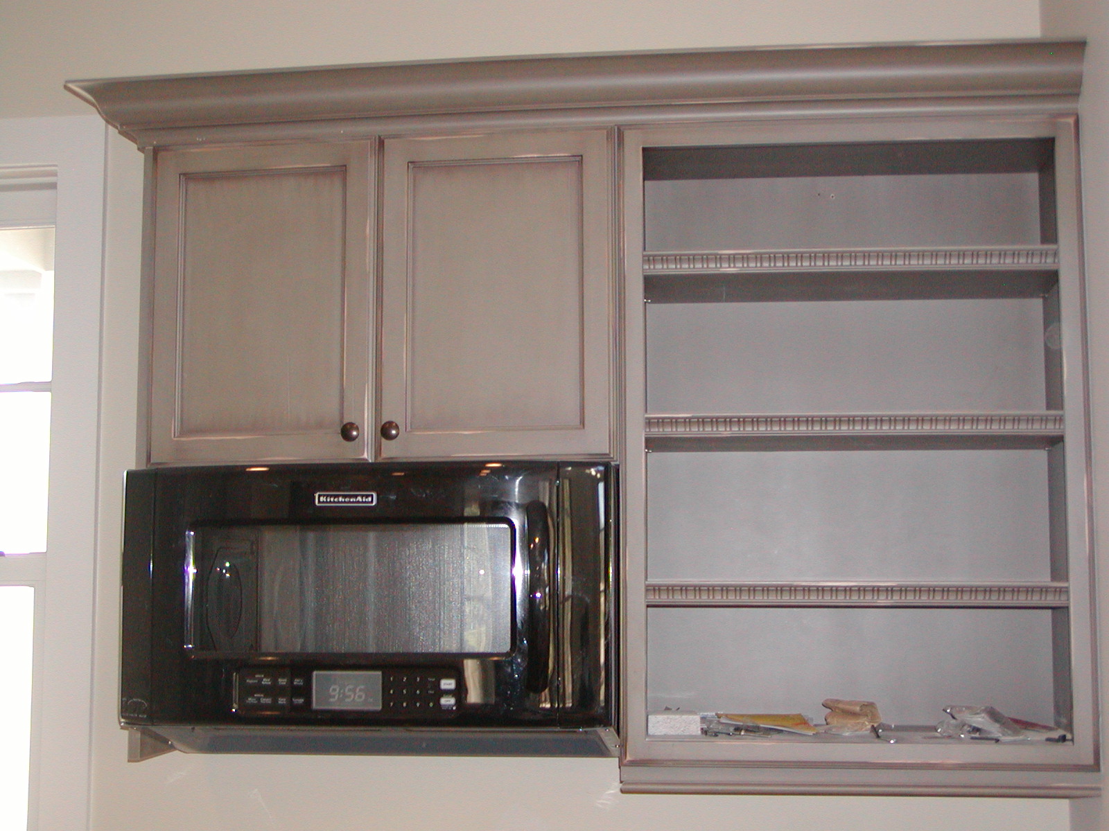 January 22, 2009 -- The microwave / convection oven / vent unit is installed and operational. The shelves are installed in the open bay next to the microwave. Final cabinet trim is being done today. | ![]() |