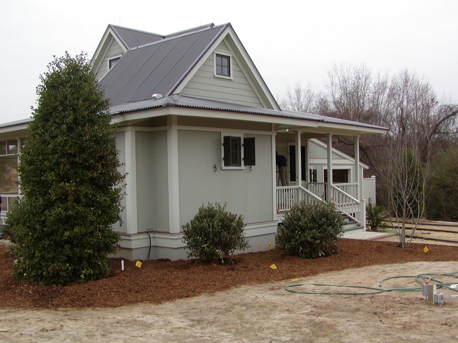 January 26, 2009 -- The northwest corner of the house got more mulch today. The vent cap on the roof will be painted brown to match the roof in the next day or so. | ![]() |